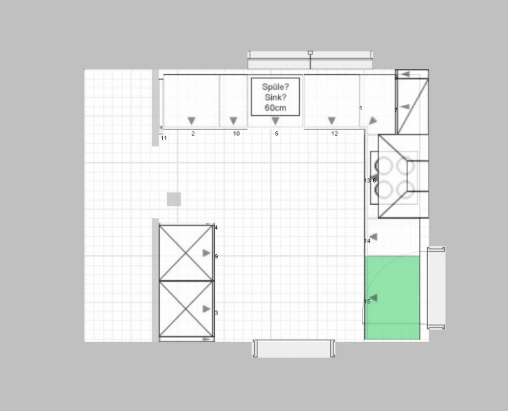 AW: Küche in Mietwohnung (Schrägen, 10,7qm, 2 Türen)