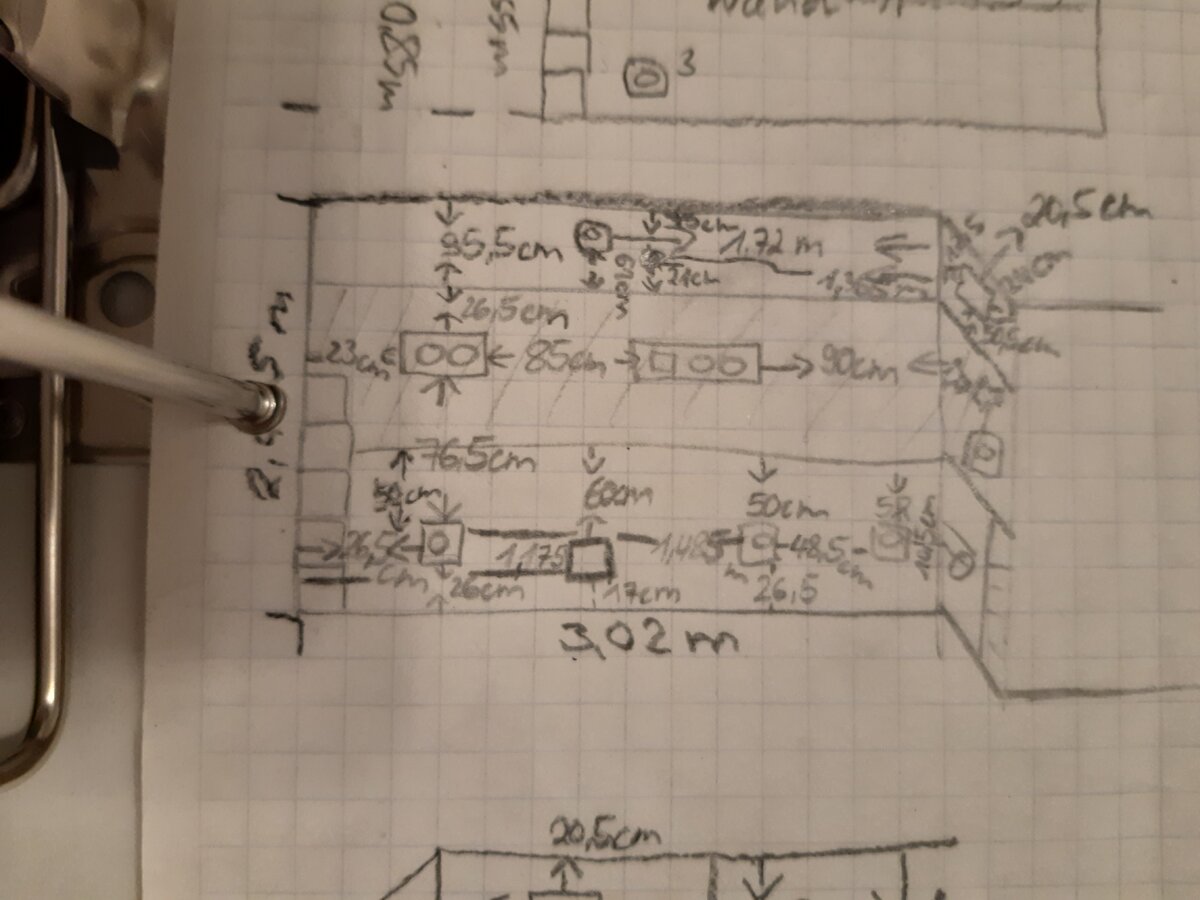 ich habe jetzt weitere Pläne angehängt. Die Zeichnung der Anschlüsse haben wir gemacht bevor die derzeitige Küche aufgebaut wurde. Steckdosen (besonders die total dämliche Steckdose direkt über dem Kochfeld) werde ich auf jeden Fall verlegen lassen.