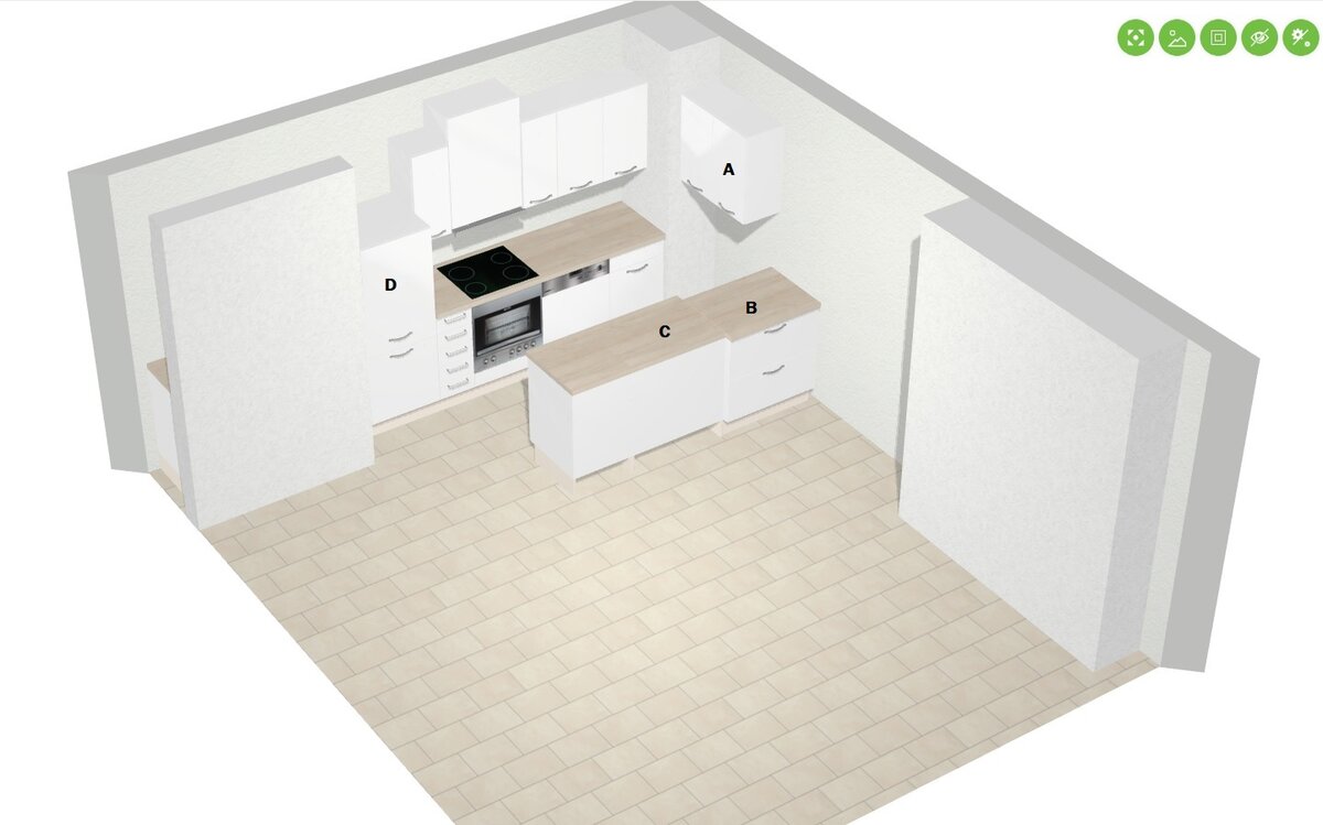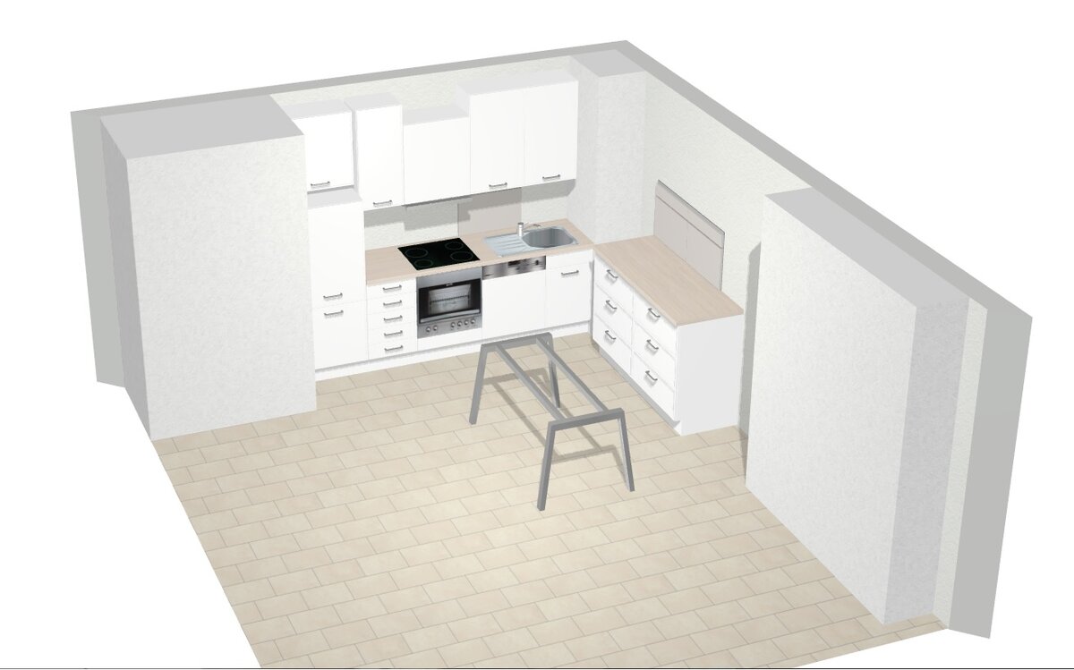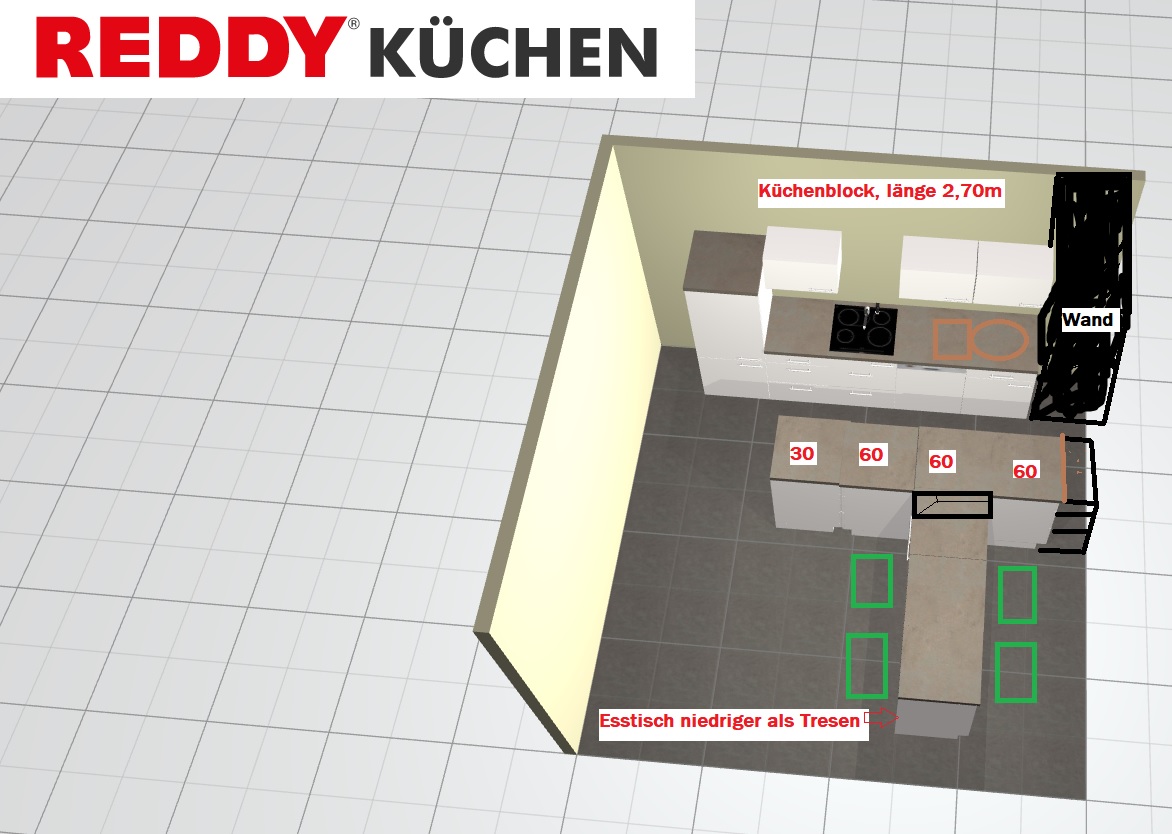 Ich habe zur Darstellung etwas mit dem Reddy-Planer getüftelt um die derzeitige Küche zu zeigen. Der Planer hat jedoch nur die ganz flachen Oberschränke.