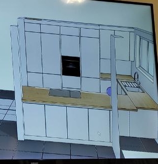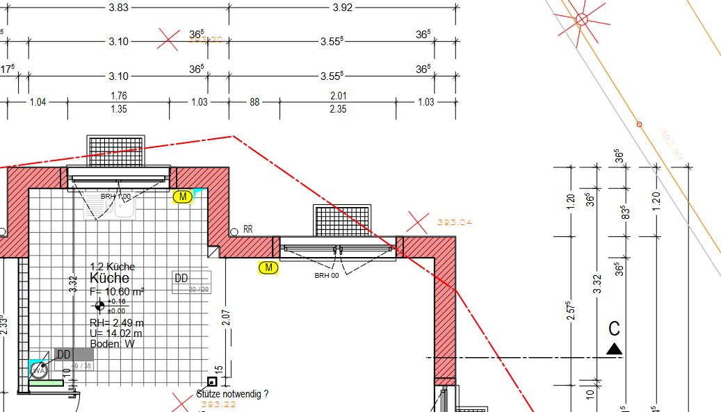 Wir müssen wie im Bauplan eingezeichnet eine 15x15cm Stahlstütze irgendwie optisch ansprechend integrieren und einen Wäscheabwurfschacht vom OG in den Keller hinter einem Küchenelement verschwinden lassen.