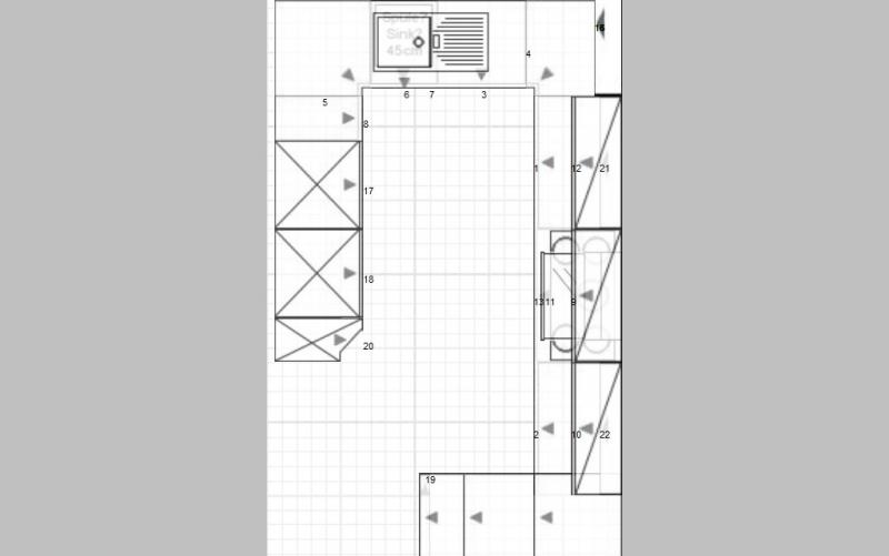 Michael, in seiner ursprünglichen Planung wollte er ihn als Sologerät an der linken Küchenwand platzieren. In seiner zweiten Planung dann im Hochschrank links vom Backofenhochschrank.