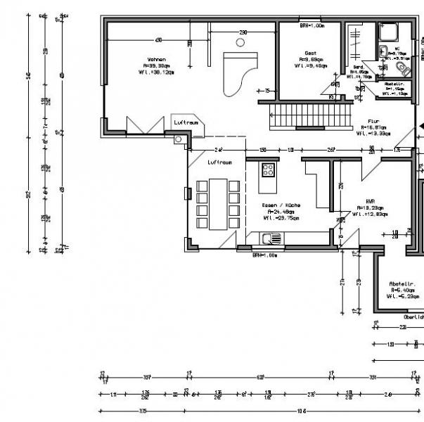 wir planen eine grifflose Küche in unseren Neubau. Bauantrag steht vor der Einreichung, so das Maße im Grunde festehen. Das Haus ist ein KfW 55 Haus mit zentraler Lüftungsanlage und Kamin daher Umluft DAH.Die Küche ist offen und hat zusammen mit den Essbereich 24qm. Anschließend kommt eine Wohnraum mit 40 qm Wohnfläche. Der Küche angschlossen ist zudem der HW-RAum, der auch als Speisekammer dient. In diesem werden neben Konserver etc. auch eine Teifkühle untergebracht, so das in der Küche nur ein Kühlschrank ohne Gefrierfach nötig ist.
