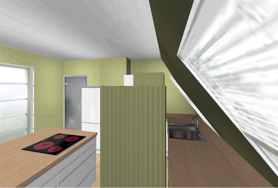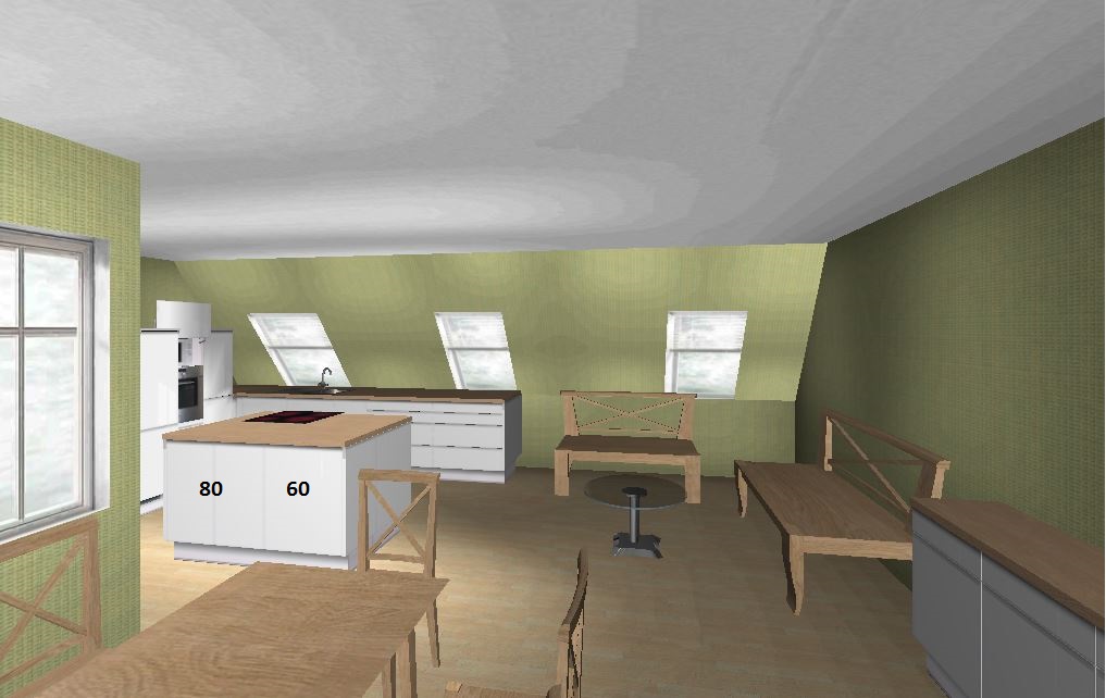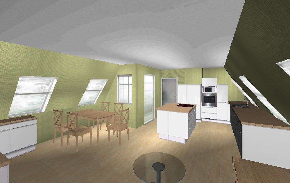 Wie hoch ist der Raum im Küchenbereich, damit man die Schräge im Plan richtig hinbekommt?