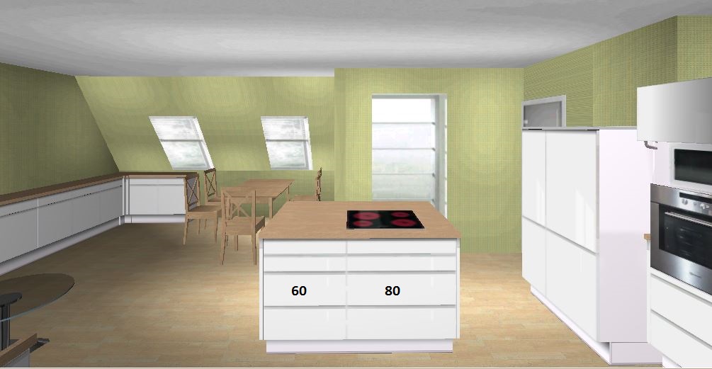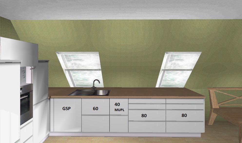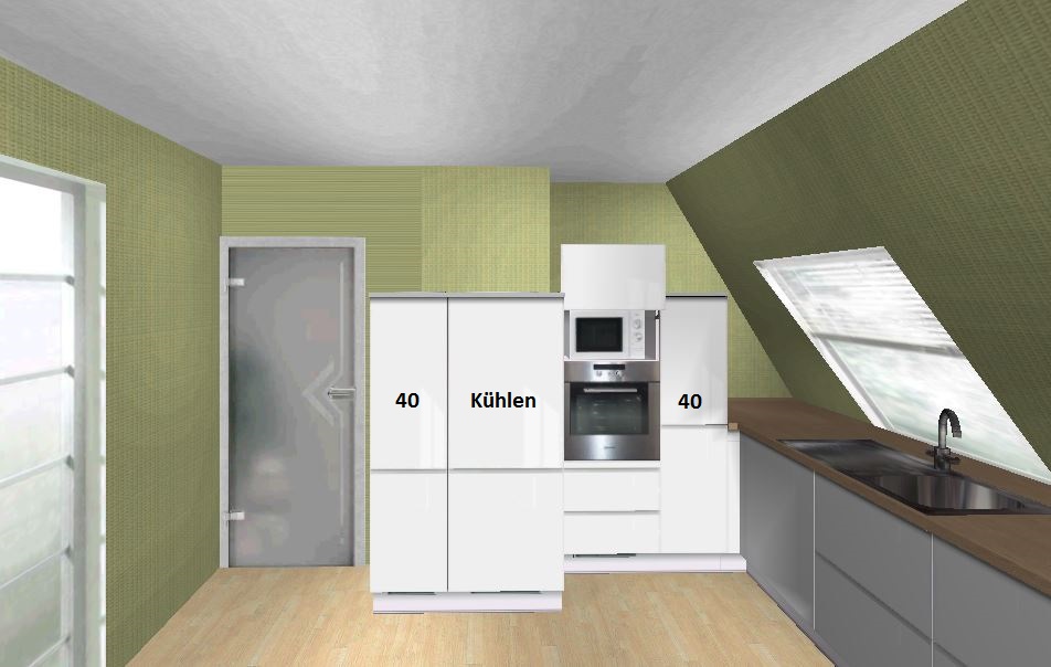 Hallo zusamen,erstmal vornweg, wir fanden den Vorschlag von Evelin so toll, dass wir gestern gleich nochmal in der Wohnung waren um alles nachzumessen. Die Küche ist von vorn bis hinten durchdacht. Spüle unterm fenster sieht toll aus, kleine Kochinsel um die man von allen Seiten rankommt. Das ganze wirkt nicht massiv und gliedert sich super ins Wohnzimmer ein. Vor allem aber die Idee den heizkörper rauszuwerfen um so den bisher unnützen platz unter dem fenster zu nutzen war echt klasse. Die Dachschräge beginnt in einer höhe von 88 cm. Jetzt wird gerade der Fußboden rausgerissen und neugemacht. Dannach ist die Höhe voraussichtlich 88cm oder mehr. In Evelins Planung sind die Schränke sowieso etwas abgerückt sind, kann mein kopf auf eine Höhe von 1.80. Das reicht für mich und erst recht für meine Frau. Im übrigen gefällt uns auch der Designvorschlag sehr gut.Das einzige wo wir noch überlegen ist wegen der Versetzung durch den Versorgungsschacht. Dazu schreib ich nachher nochmal. Baby ruft. Liebe Grüße, Christoph