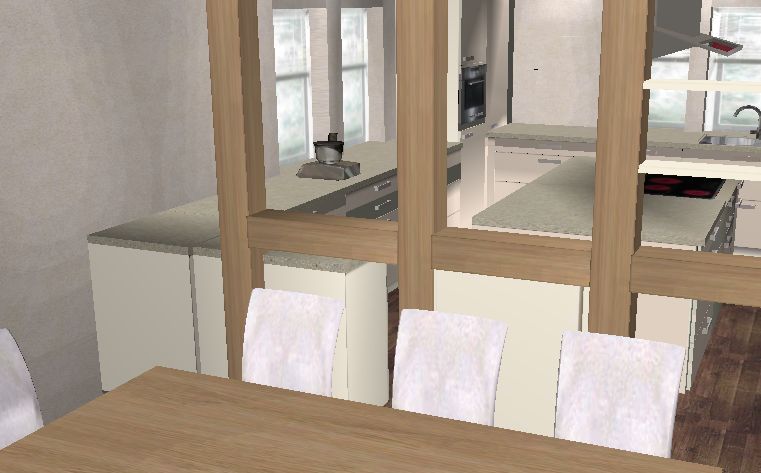 Müslischalen, Tassen etc. .. messen, die passen vermutlich auch super einzelen in die Schubladen am Fensterunterschrank rechts ...wobei man da einen der beiden Unterschränke ja auch zu 2-2-2 Raster machen kann. Generell würde ich Geschirr eher dort konzentrieren .. klar, ein Schritt mehr bzw. Zwischenstopp auf der Insel beim Ausräumen, aber dafür für die Tischdecker freie Bahn, wenn noch jemand anderes am Kochen ist.