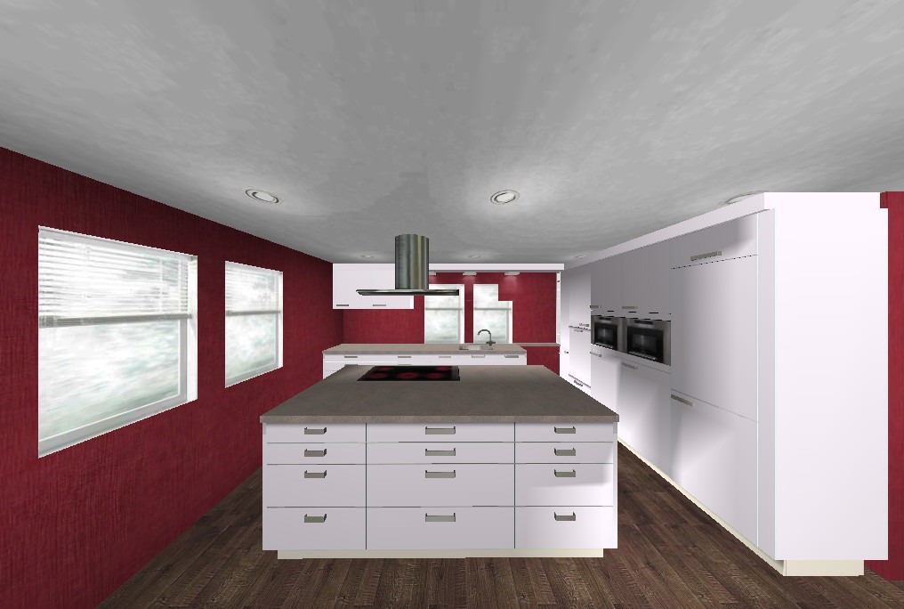 Du hast doch noch jede Menge freien Platz dabei. Einiges würde ich nochmal überdenken. Alles was man zum Arbeiten braucht, Gewürze, Messer, Küchenhelfer, auch Siebe etc. usw. würde ich im Dunstkreis um Kochfeld und um Spüle setzen und nicht auf Inselrückseite.