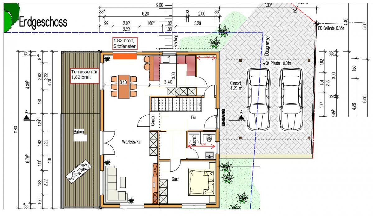wir planen für unseren Neubau gerade unsere Küche. Aktuell können die Innenwände und Fenster/Türen noch komplett geändert werden.