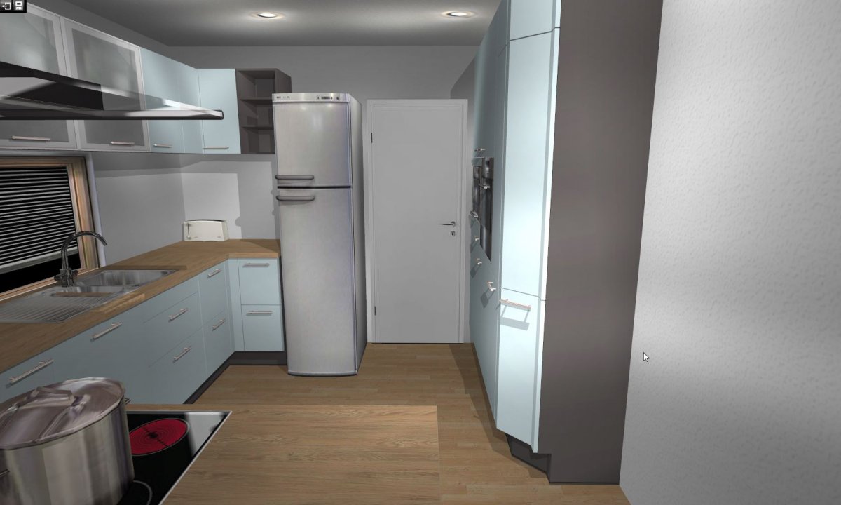 Die Tür zum Abstellraum konnte ich im Alnoplan leider nicht um 180° drehen. Aktuell ist geplant, dass sie zum Abstellraum aufgeht.