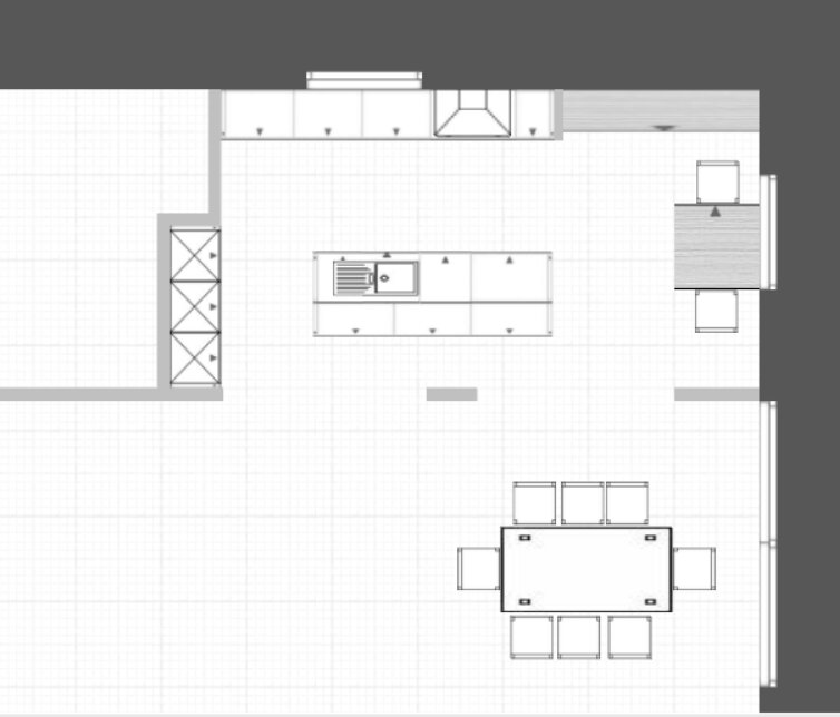 Das wird bestimmt sehr schön werden, wenn ihr fertig seid. Aber deine Ursprungsplanung finde ich maximal ungünstig. Daher würde ich nicht daran festhalten, sondern neu denken. Für mich bildet deine Planung lediglich eine Momentaufnahme ab. Wenn die Kinder größer sind und die Spielecke nicht mehr benötigt wird, hast du da eine Ecke geschaffen, die du kaum sinnvoll nutzen kannst, weil du sie mit der Zeile von allem anderen abgegrenzt und den Raum dadurch zerstückelt hast. Ich würde schauen, dass die Planung offener und ein unverbauter Zugang zur Terrasse realisiert wird. Denk dran, dass eine Küche 20 bis 30 Jahre hält, die Kinderecke nicht. Ich würde daher so planen, dass die Spielecke mehr integriert als separiert wird und es später auch ohne Kinderecke sinnvoll nutzbar ist. Vor diesem Hintergrund könnte eine Insel die meiste Mobilität bieten, um mal schnell zum Kind, zum Esstisch oder zur Terrasse zu gelangen.