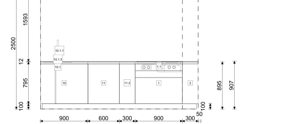 - die Nische ist dann etwa 110cm für die Kaffeemaschine und eine Küchenmaschine