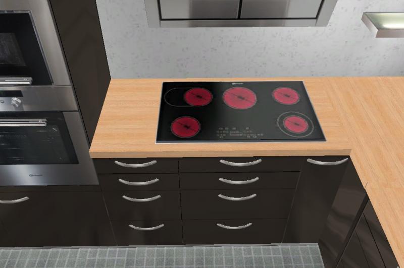Geplant war die braune Küche mir rotem Glas anstatt den obligatorischen Fliesen. Das könnte man, wenn man es satt hat auch ohne große Anstrengungen und finanziellen Mittel austasuchen.