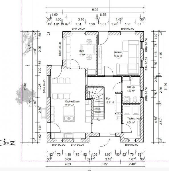 Desweiteren ist der Technikraum im direkten Zugang auch mal von der Küche aus .. so dass man da auch an ein evtl. dort noch gestelltes Vorratsregal schnell rankommt. Oder, wenn dann das 2. Kind da ist, dort im Technikraum tatsächlich schnell den Kinderwagen unterstellen kann.