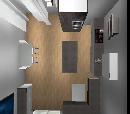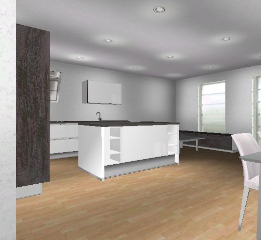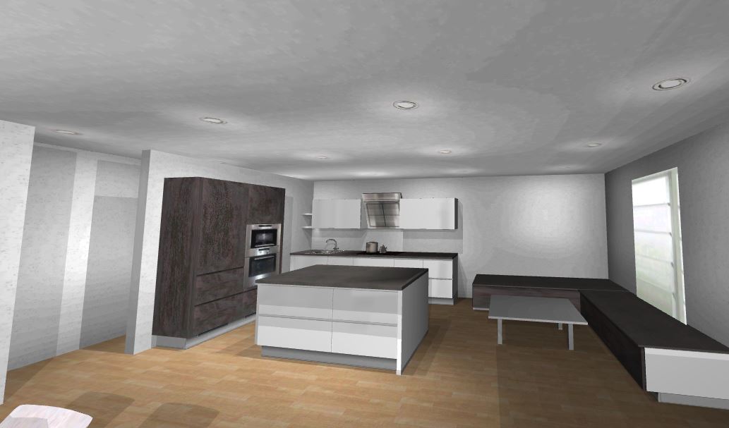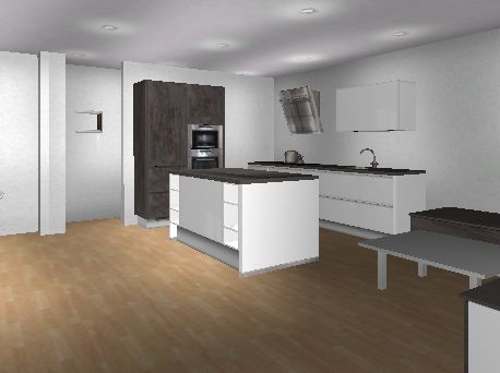 Das ist meine Planung im Moment. Ich habe bei der Insel zwei Schränke in der Tiefe auf 40cm gekürzt da ich fürchte, dass die Insel mit zwei 60cm tiefen Schränken zu groß wird. Bei dieser Planung müßte ich die zwei Schränke kürzen lassen, und weniger Tiefe Laden besorgen. In Ermangelung einer Sitzgarnitur im Planer habe ich auf der Seite bei der Balkontüre eine "Sitzgarnitur" mit Küchenkästen gebaut. Die Hochschränke müssen auch erst besorgt werden. Die gibt es zur Zeit nicht.