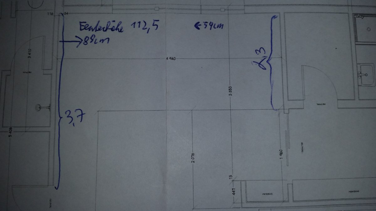 @ Küche: Die Fensterfront ist 4,94 m. Wandhöhe 2,7m Fenster beginnen bei 1,125m