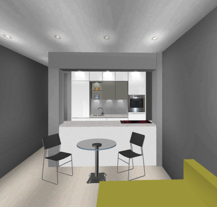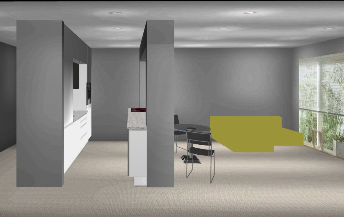 Die Möbel fliegen alle raus. Es kommt ein kleines Ecksofa hin. 200/140die Aussicht musst du dir verdienen ...
