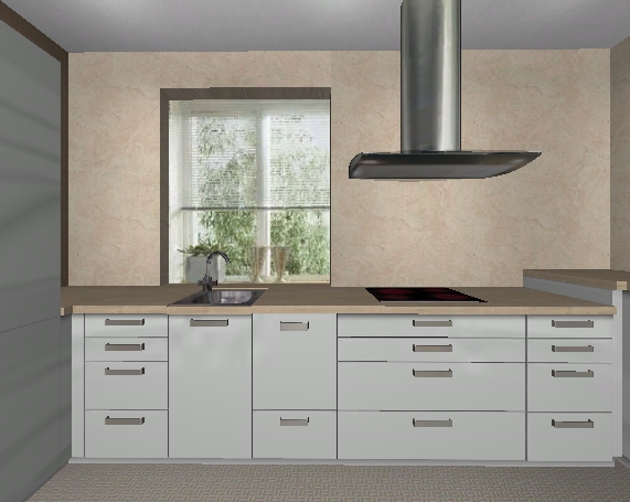 Vielleicht legst du mal den gesamten Raum im Alnoplaner an, damit du einen besseren Eindruck von der Gesamtsituation bekommst - das bietet sich bei offenen Küchen sowieso immer an. Und auch gleich Tisch und Stühle, Sofa usw. mit einzeichnen.