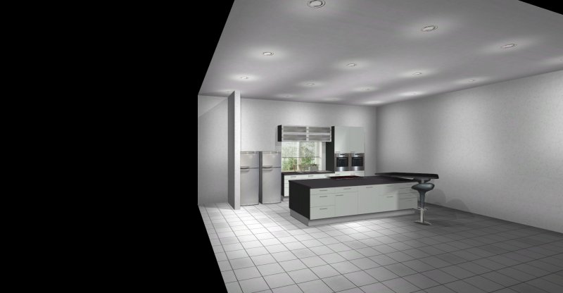Also im groben meinte ich es wie im Anhang. Wobei eben keine Glaswand sondern ein Fenster in der Mitte. Links und Rechts davon durchgänge Schränke (mit Herd, Garer) und Kühlschrank. Die Insel hat Herdplatten und Spüle und auf der Rückseite Kästchen.