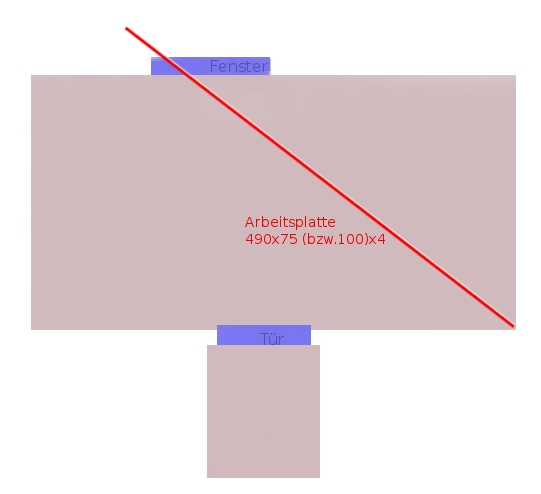 Ich habe mir das Argument "Platzverschwendung durch kleine Schränke" noch mal durch den Kopf gehen lassen. Im Prinzip benötige ich keinen extra Essig&Öl-Schrank planlinks, weil ich dann in der Salatvorbereitung den Zugang zu den Flaschen versperre.