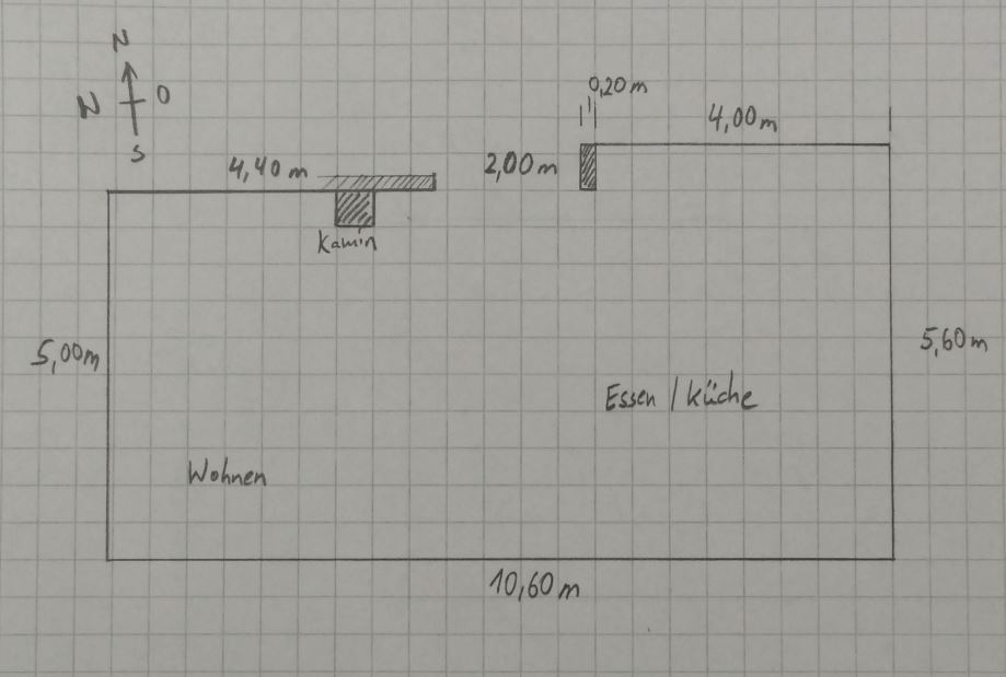 Die Innenmaße sind wie in der angehängten Grundrissskizze. Fenster und Terrassentüren können noch beliebig platziert werden. Die Terrasse ist auf der Südseite und wir planen den Wohnbereich mit bodentiefen Fenstern.