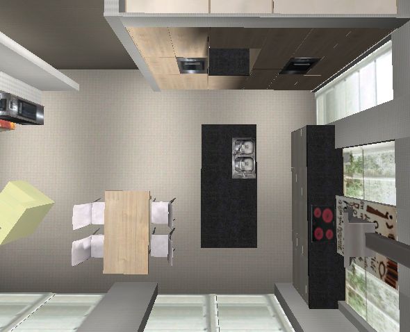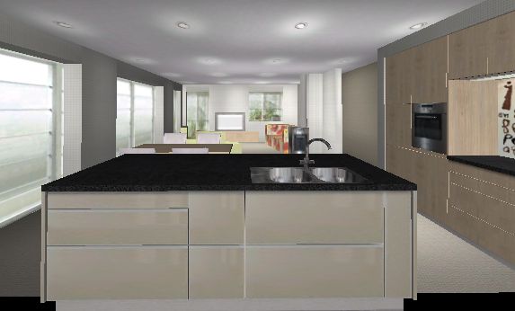 Die Spüle haben wir auf die Wandseite geplant weil Geschirr nicht immer sofort in die Spülmaschine geräumt wird. Die Arbeitsfläche soll extra tief (80cm) sein, damit wir viel Platz haben um Sachen abzustellen.