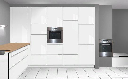 Aber die Idee mit Hochschränke an die rechte Wand wäre sicherlich eine sehr gute Möglichkeit. Da bietet sich diese Wand / Versorgungsschacht doch direkt an. Versuche das mal im Alno -Planer, stelle mir das schon gut vor.