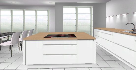 Für die Insel müssten es aber tatsächlich Schiebetüren sein. Ich habe gerne ein Fenster beim Kochen offen, schon mal im Frühjahr und Herbst wegen der Wärme beim Kochen.