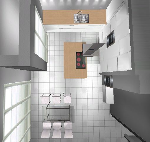 interessante Planung. Aber die Abstände von der Insel zum Hochschrank und von der Insel zum Fenster wäre nur ca. 1 Meter. Das finde ich doch etwas eng.
