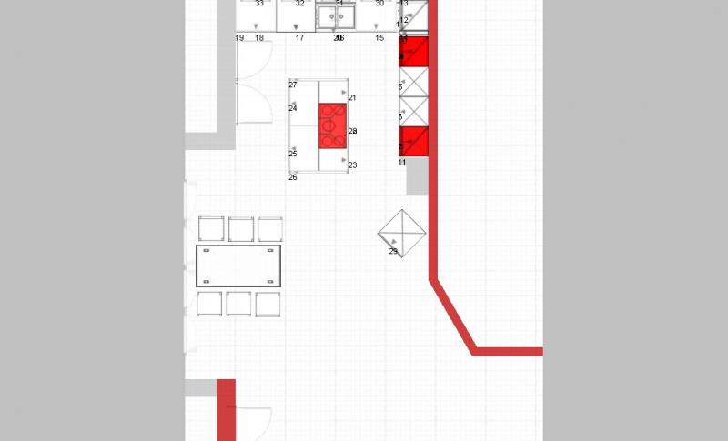 Die linke Tür (im Plan weiter unten) für "Frischluft" beim Kochen besser zu lassen. Die würde mich mehr stören.