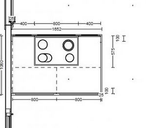 Zwischen der Tür zum HWR und der Terrassentür soll eine Kochinsel stehen. Die Maß wären hier so 1,1m x 1,60m. Also 4x80er Auszüge, die Rückseite schmaler.