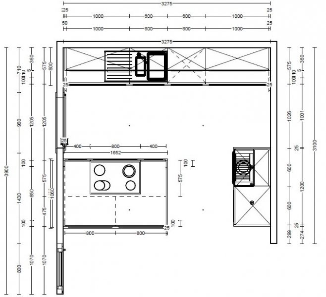 Dafür ist in deiner Planung die Kochinsel zu klein... ;-) Da ist das arbeiten wirklich nur auf das Kochen beschränkt. Selbst zum Anrichten ist der Platz knapp.