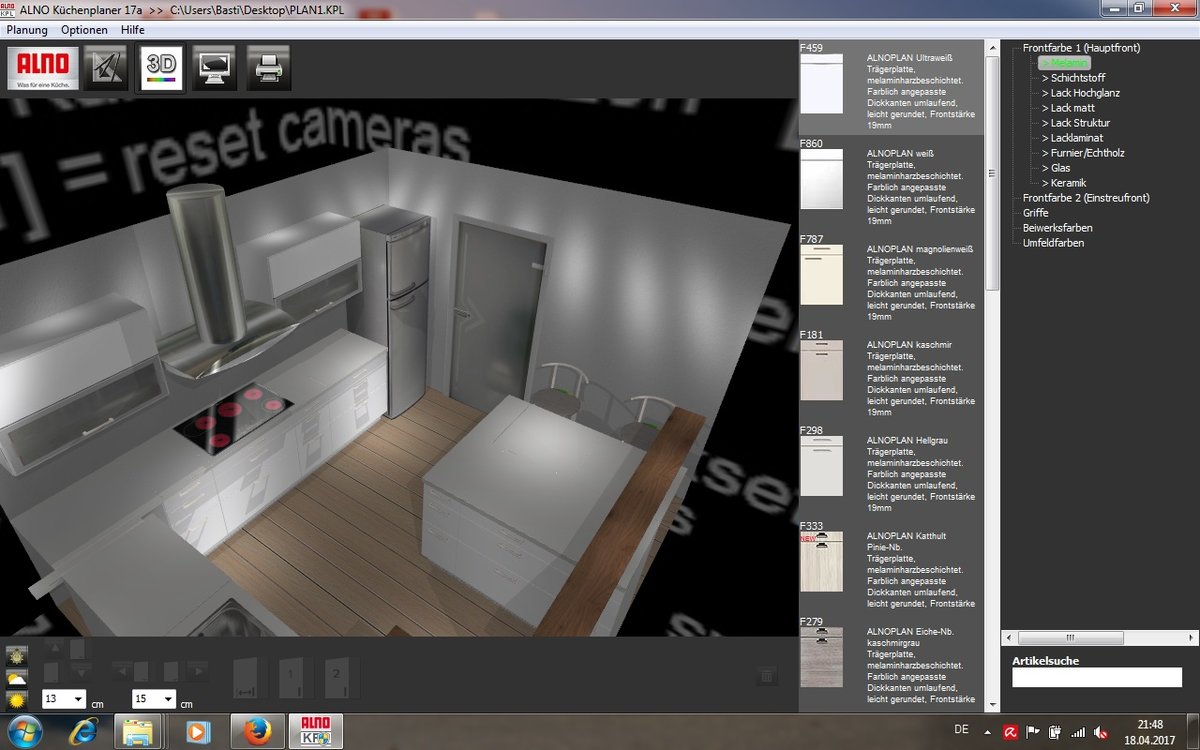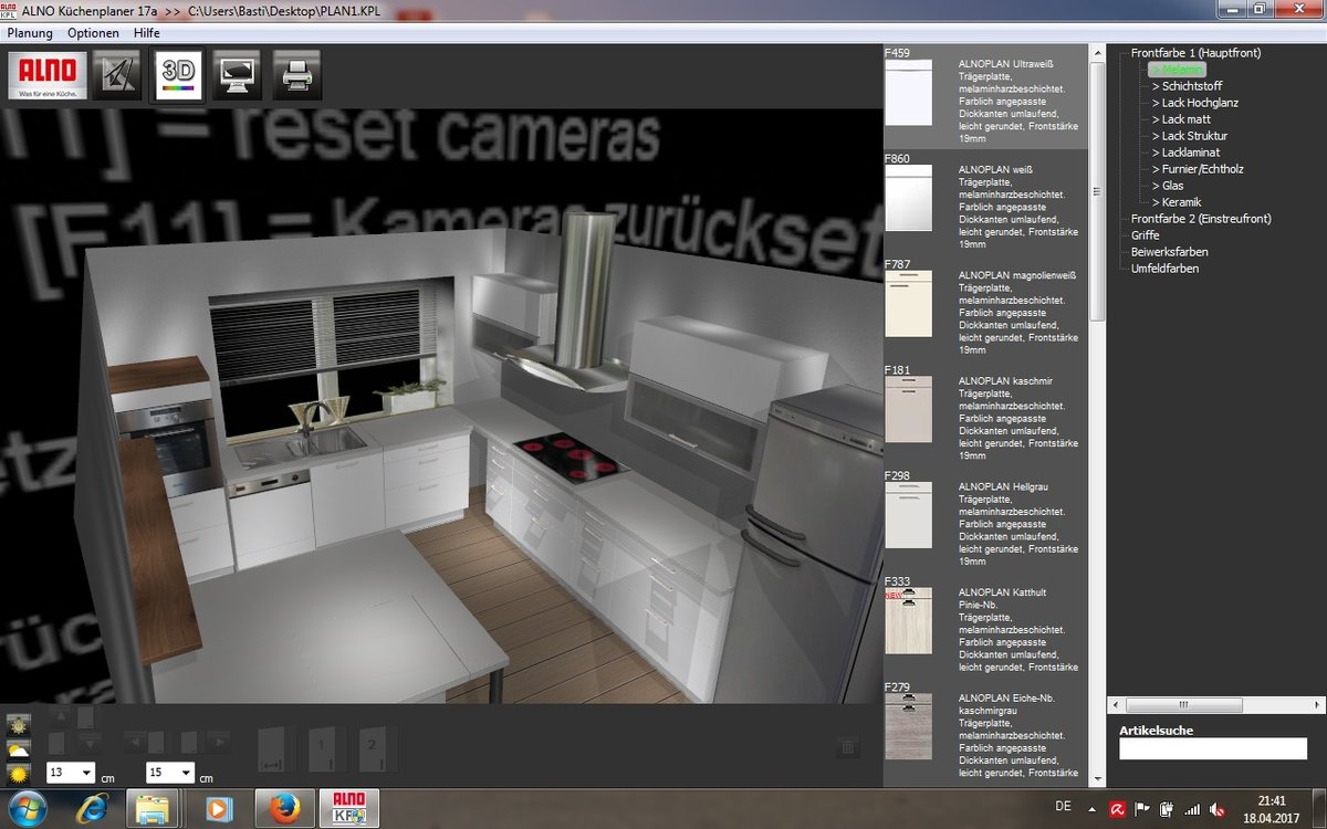 Könntest Du bitte einen Screenshot der 2D-Grundrissansicht des Alno -Plans machen und hier posten? So kann man sofort Abstände usw. erkennen.