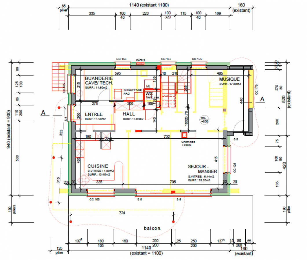 Gelb: Das sind die alten Wände, die eingerissen werden.
