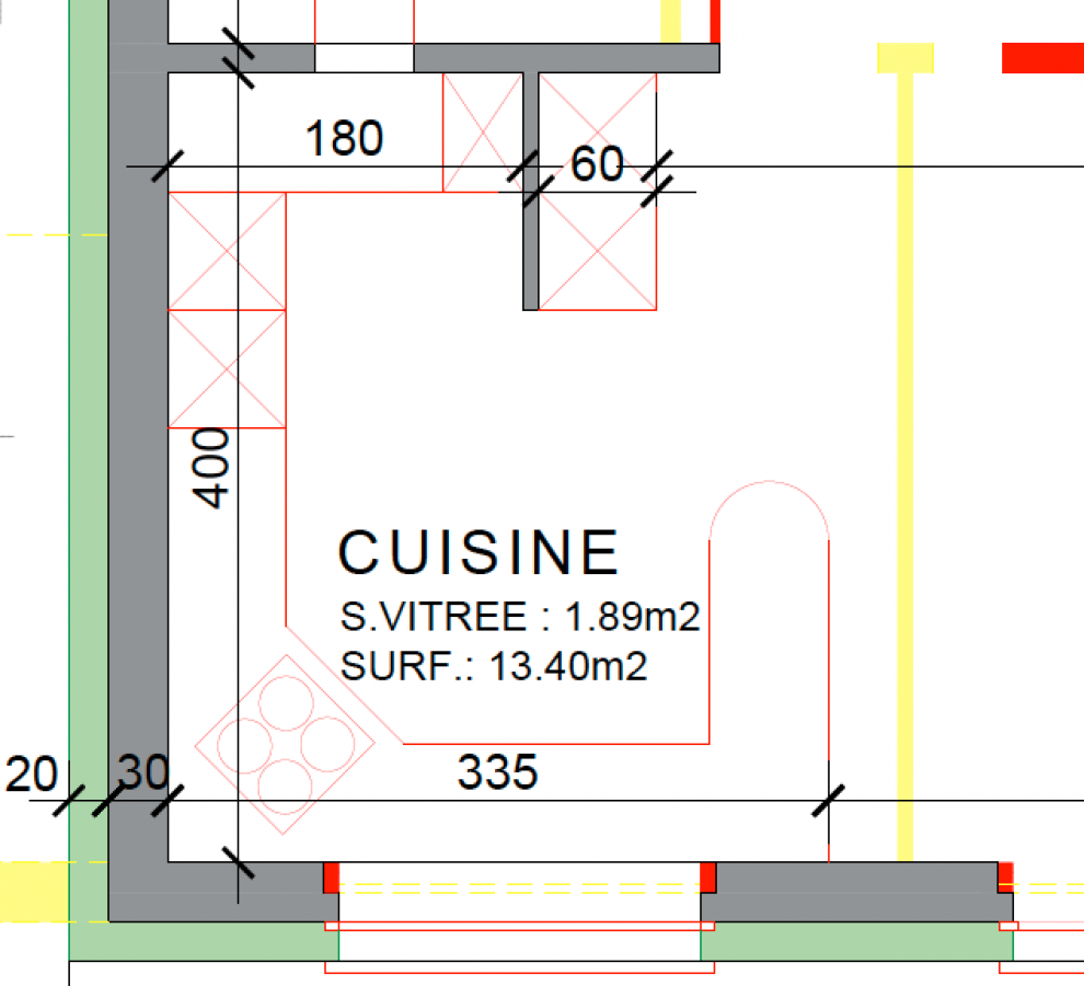 - Eine Vergrösserung des Plans für die Küche.