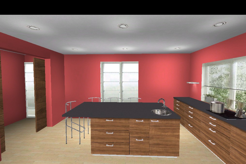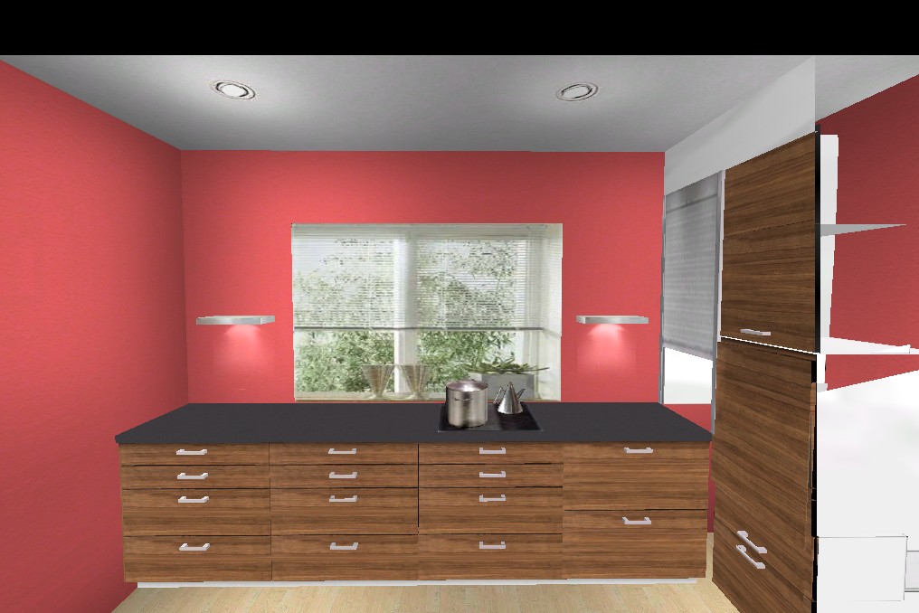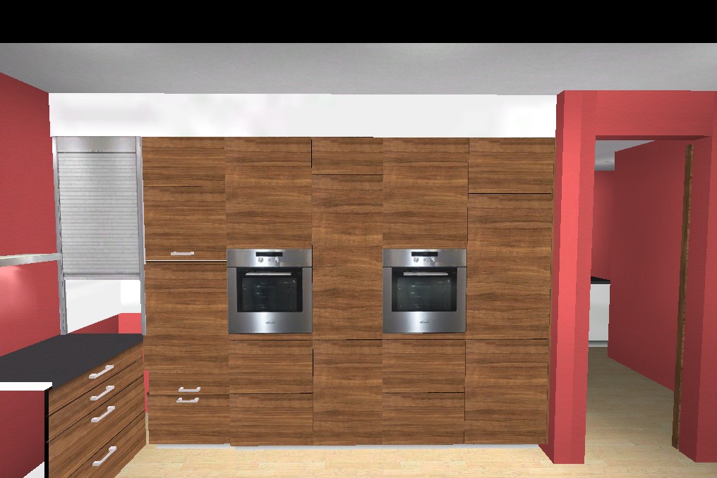 Du solltest den einen Schrank an der Fensterzeile im Raster 1-3-2 wählen, wenn die anderen daneben 1-1-2-2 sind. Paßt besser. Dafür an der Insel den 2-2-2 zu 1-2-3 machen, dann passen auch da die Linien.