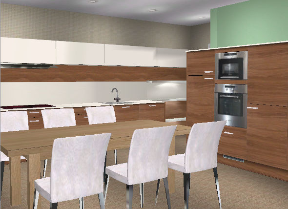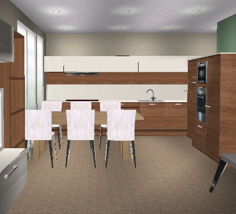 Nein, der Boden ist nicht so dunkel wie im Alnoplaner dargestellt, sondern hell, wie auf den ersten Bildern, sprich ein Eicheparkettboden. Leider speichert der Alnoplaner die richtigen Texturen für Boden, Glasplatten und Geräte nicht mit ab.