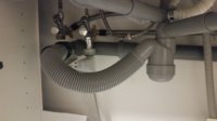 Das ganze Material bekommt man relativ günstig bei diversen Shops, ich hab alles bei EW Haustechnik bestellt (waren so um die 30 Euro). Das ganze läßt sich sehr einfach installieren und sieht dann wesentlich stabiler aus als der Atlant Siphon, hatte aber für mich einen entscheidenen Nachteil: Schlussendlich war ich mit dem Abflussrohr des Siphons ca. 15 cm unter dem Wandanschluss, mit dem Atlant bin ich fast auf gleicher Höhe. Hab mich dann entschieden, doch wieder das Atlant zu verwenden. Das DN50 Abflussrohr hab ich noch um ca. 20 cm verlängert, damit der Winkel des Atlant Flexrohrs nicht mehr ganz so eng ist, zusätzlich hab ich noch etwas improvisiert und das Atlant Anschlussrohr mittels eines Winkels und einer daran festgeschraubten Rohrschelle ganz fest am Siphongummi fixiert (hoff man erkennt es am zweiten Bild). Hält jetzt bombenfest