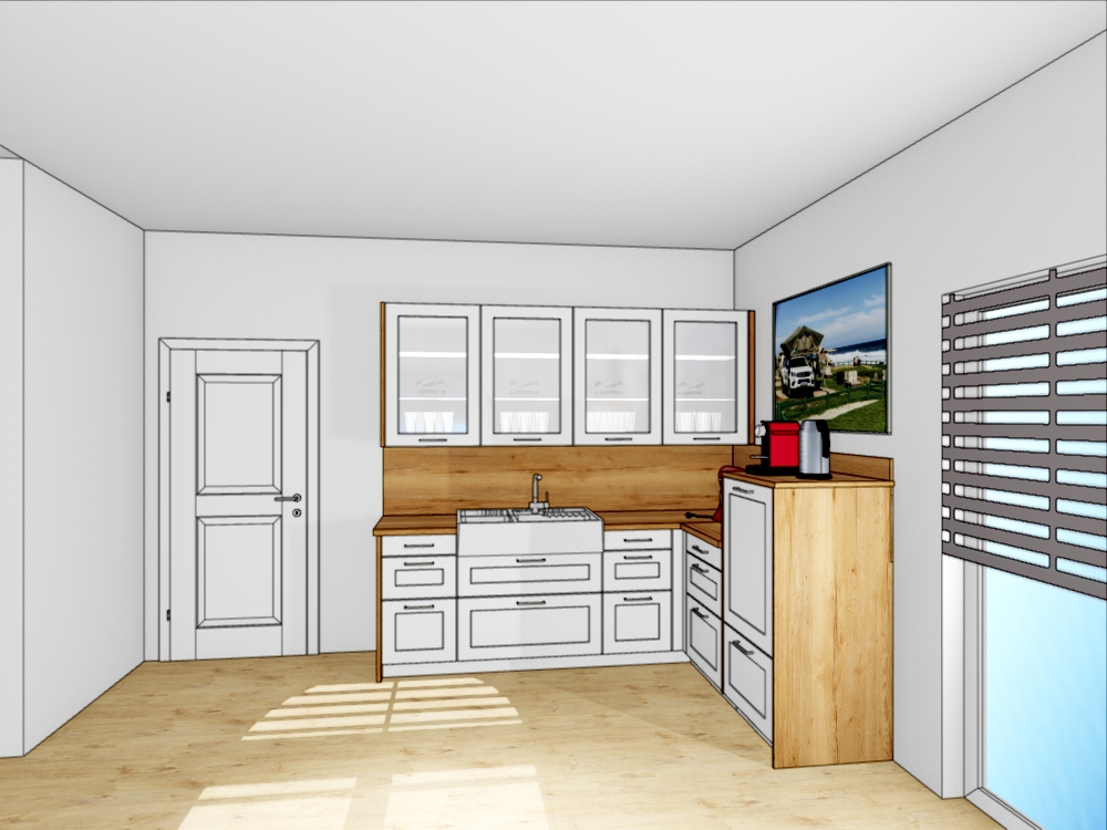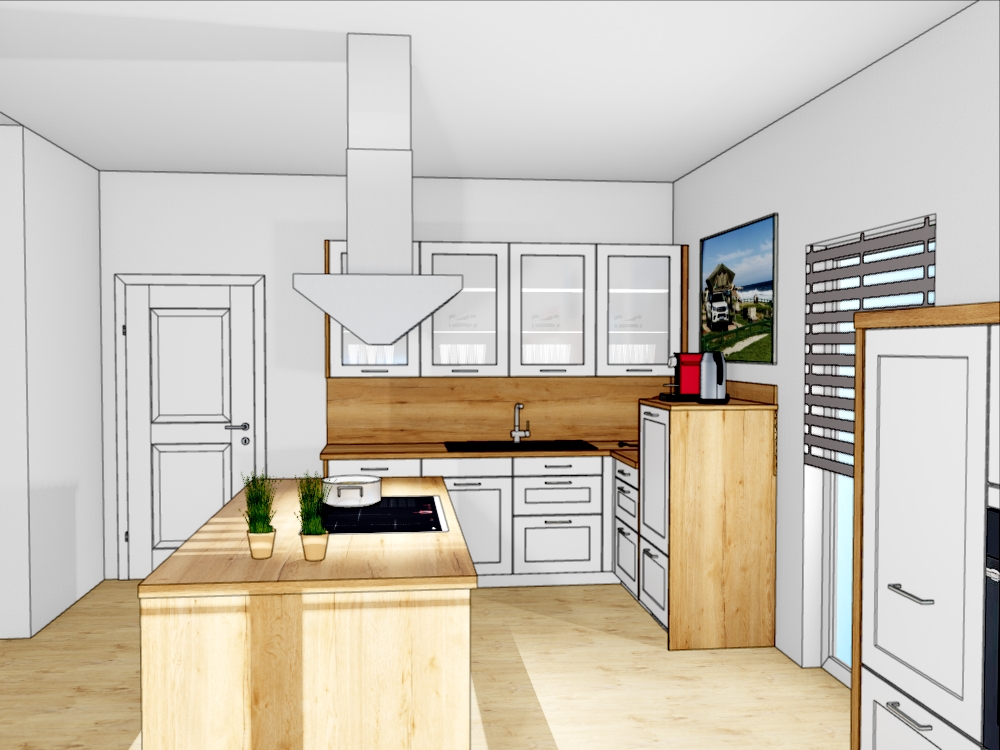 In 14 Tagen haben wir den nächsten Termin im Küchenstudio , davor möchte ich mich möglichst gut aufstellen und recht konkrete Vorstellungen entwickeln, was geändert werden muss und welche Elemente die Küche noch haben sollte. Über Tipps, Verbesserungsvorschläge und Anregungen bin ich daher sehr dankbar.