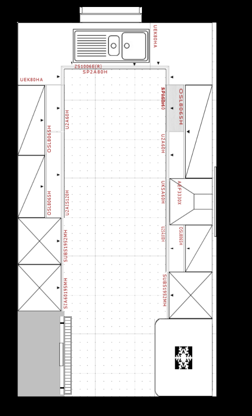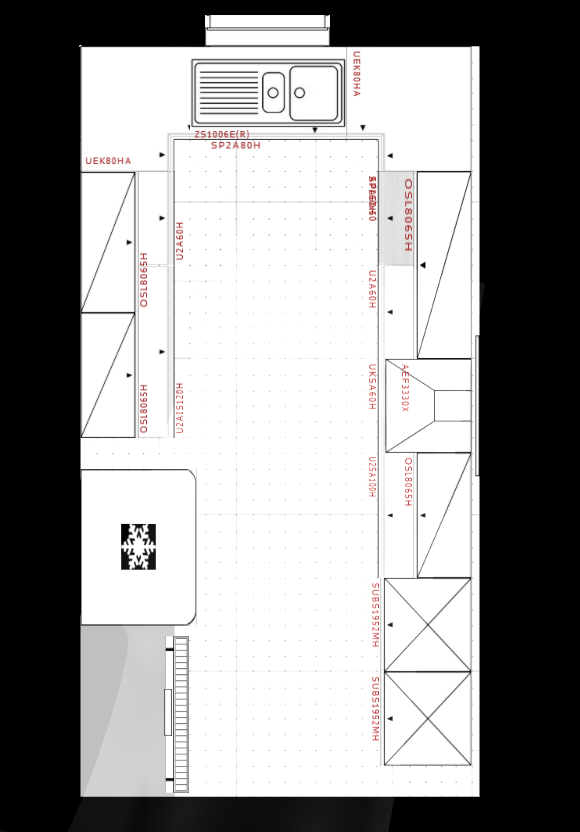 - Die Spüle würde wir rechts am Wasseranschluss platzieren – eine hochgebaute Version daher passt nicht ins aktuelle Layout, oder?