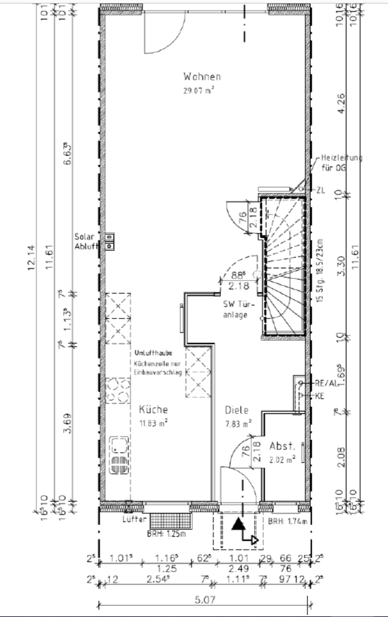 Heizung: Heizkörper am Eingang der Küche; siehe Bilder sowie Planung