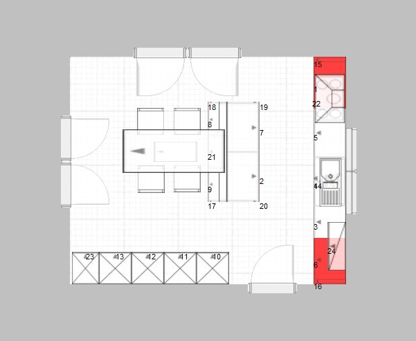 Der Vorschlag mit dem verschiebbaren Tisch ist in der Tat ganz lustig. Was mir an der Idee mit der Kochplatte an der Wand aber immer noch nicht gefällt sind zwei Dinge. Zum einen wirkt die gesamte Zeile so irgendwie asymetrisch - vorher war das alles irgendwie schön "rund". Zudem fühle ich mich beim Kochen an der Wand auch immer leicht eingeengt - eine Insellösung schafft da doch deutlich mehr Bewegungsfreiheit meine ich?