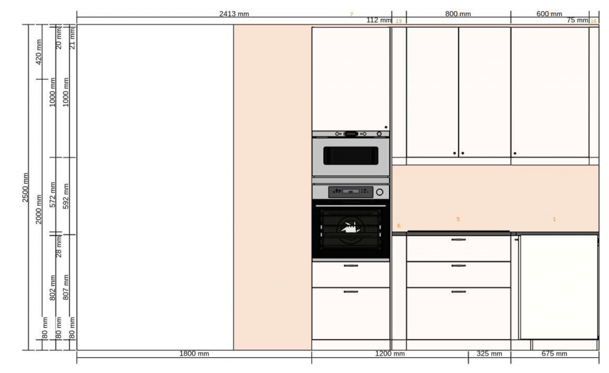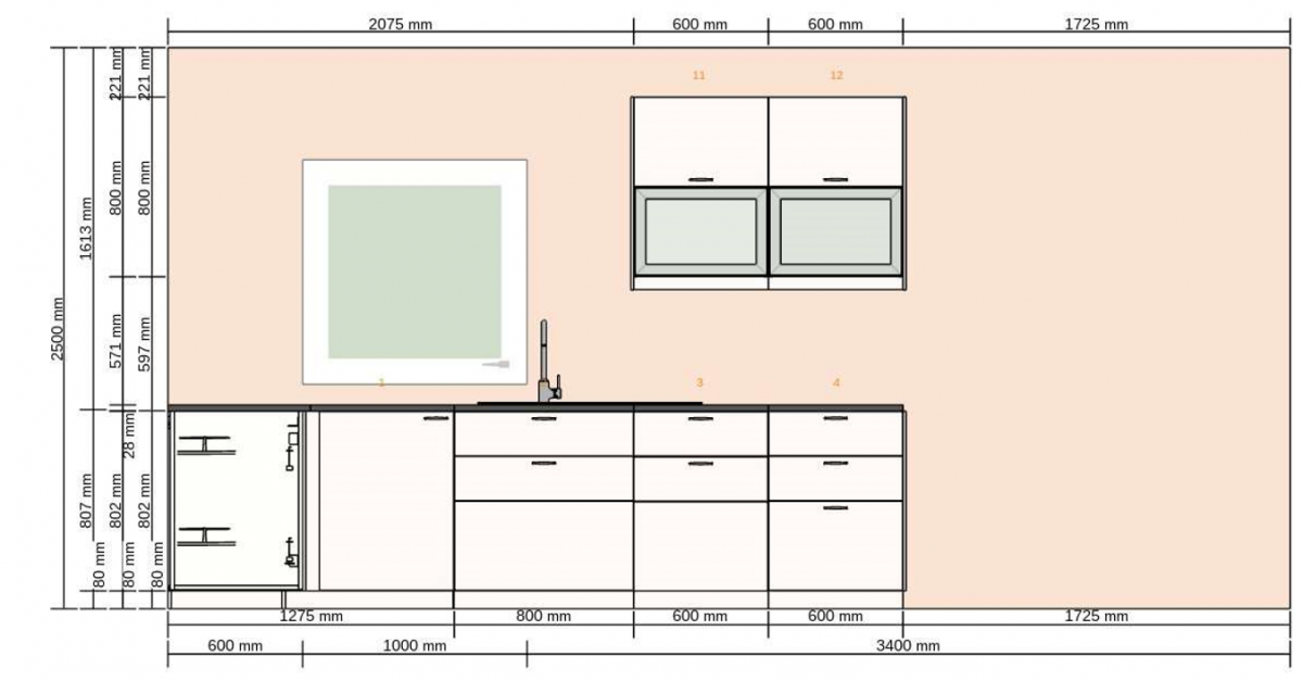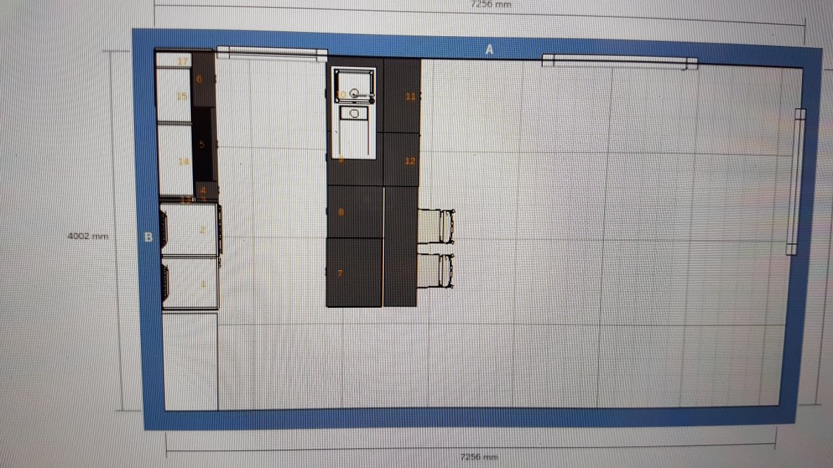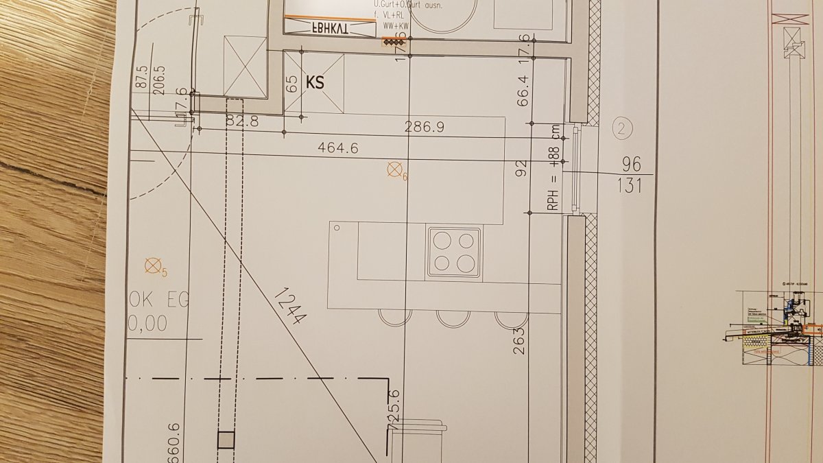 wie bereits gesagt, ein vermaßter Grundriss der Küche wäre gut.