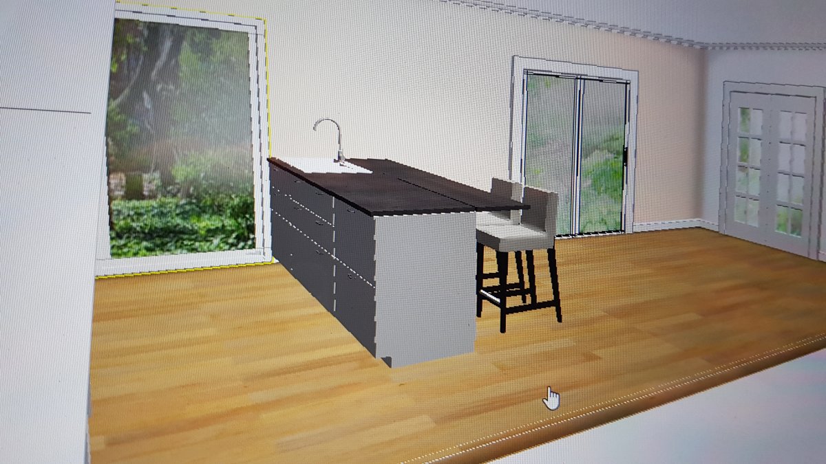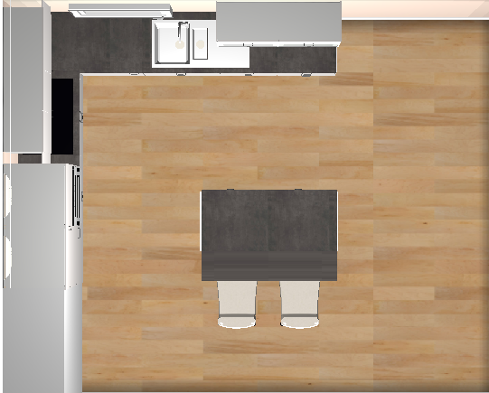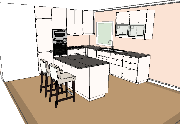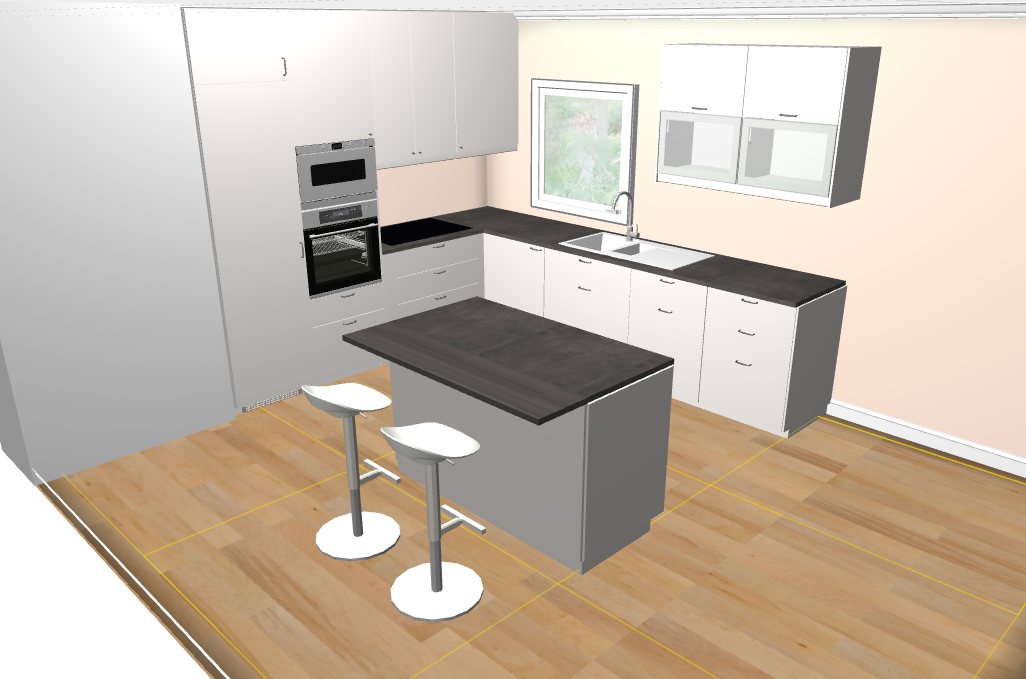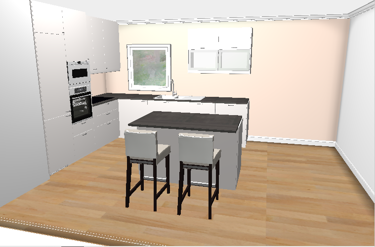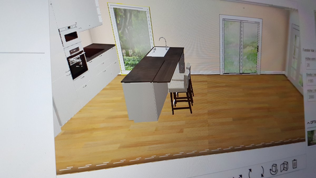 Das Inselchen sieht ein wenig mickrig aus, das Kochfeld ist zu nah an den HS - hast Du mal probiert, Russinis Vorschlag im Alno umzusetzen? Das wäre eine praktischere Lösung.
