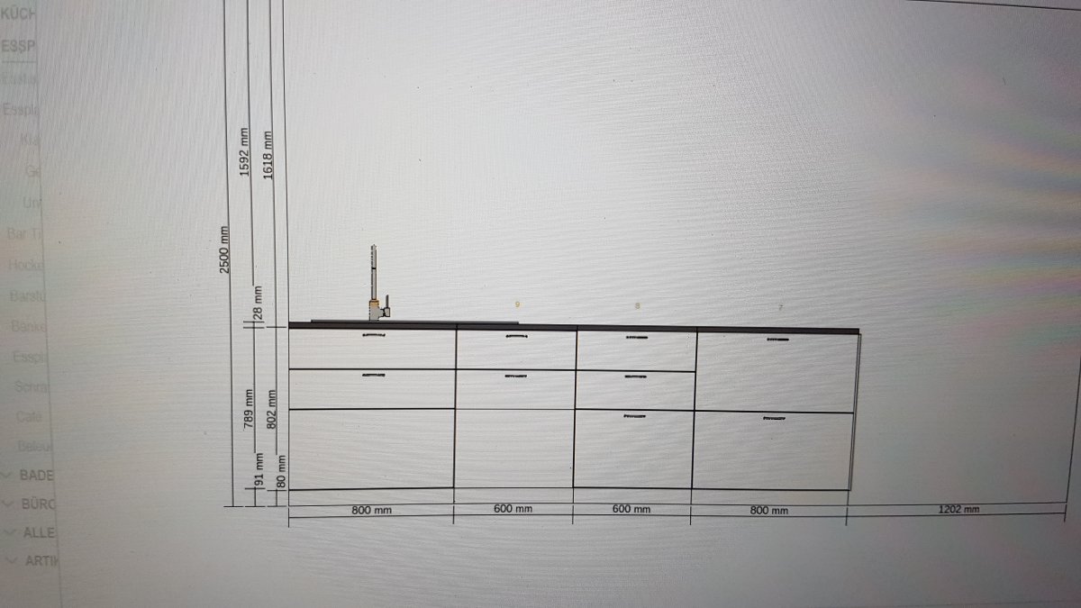 mhm... wenn Du die BRH als 80 annimst, dann wird die Planung nicht funktionieren - die Grundrissansicht ist nicht vom Alno - wie ist die Skala Deines Programms? Sprich: Ein Kästchen = 20 cm?