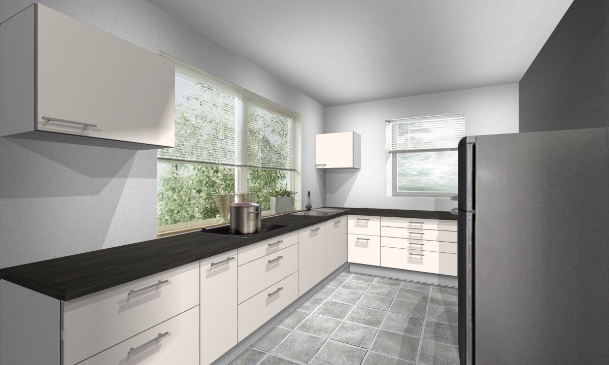 du hast viel Fensterfläche in der Küche, was ansich schön ist. Wie stellst du dir die DAH vor?