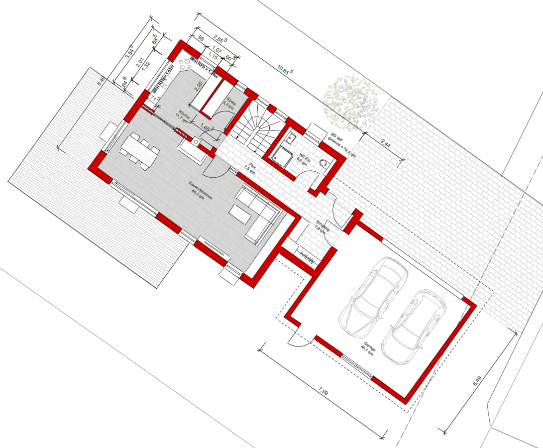 • Ich würde die Fenster so planen, dass an der Wand zur Speis eine HS-Wand geplant werden kann und den SbS umbauen, denn von der Seite sind die nicht so attraktiv.