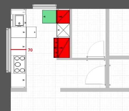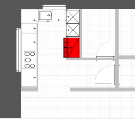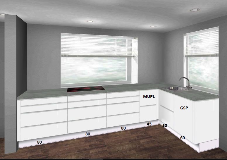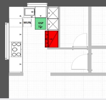 Aktuell haben wir die Spüle und den Herd am großen Fenster geplant. Somit hätten wir am kleinen Fenster freie Arbeitsfläche. Am linken Eck würden wir ein Karussell für Töpfe planen. Mag ich zwar auch nicht so aber beim begrenzten Platzangebot sollten wir nicht darauf verzichten. Über dem Karrussell würden die die Abtropffläche des Spülbeckens setzen und ganz im Eck soll unser Thermomix stehen. Rechts im Eck weiß ich ehrlich gesagt nicht was ich da hinmachen soll. Würde es da klappen noch einen Schrank unterzubringen auf Höhe der Arbeitsfläche? Weil die Arbeitsfläche bis zur Wand ist auch nicht sinnvoll, die werde ich nie richtig nutzen können, außer als reine Abstellfläche.