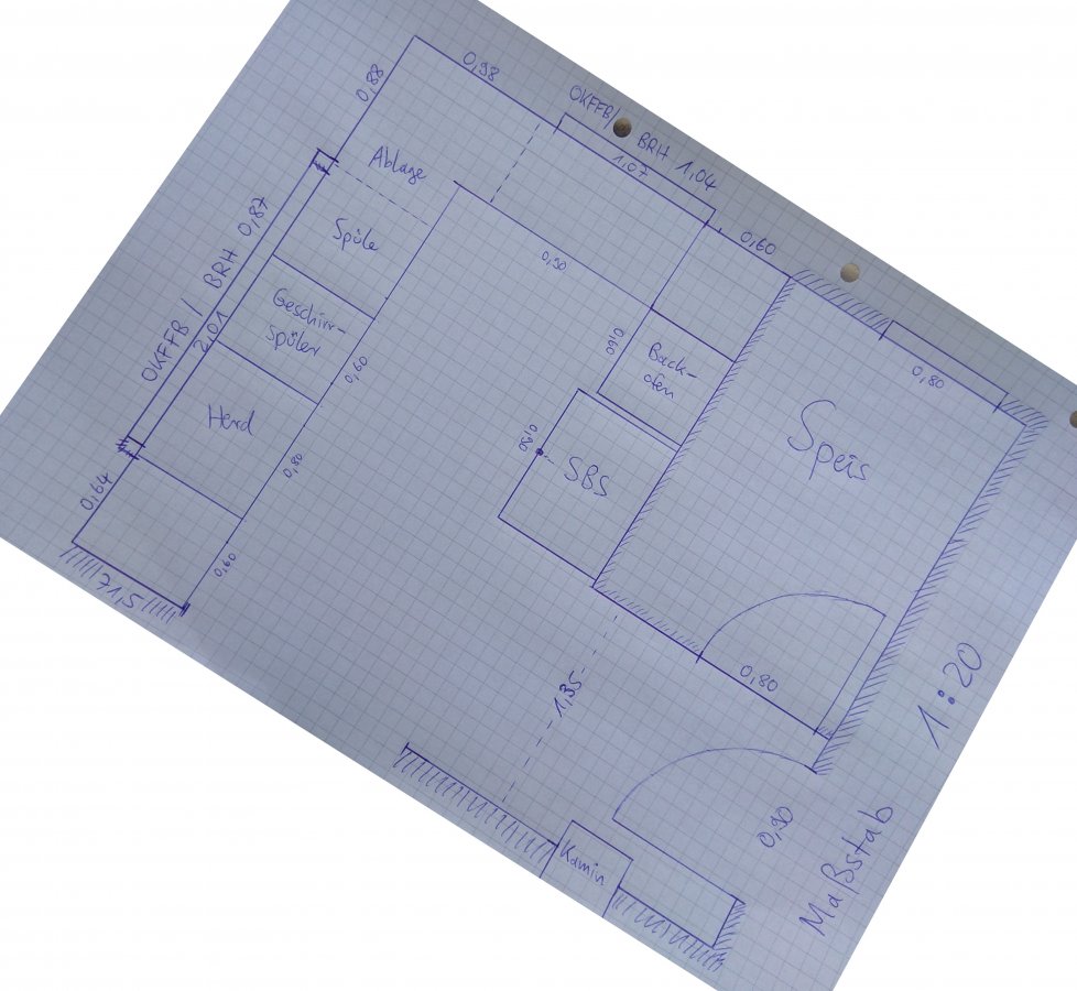 Wobei der andere Mögliche Standort dann links an der Wand wäre. Das nimmt dann aber wieder Arbeitsflächenplatz weg und wir müssten ein Fenster streichen. Das würden wir nur machen wenn es gar nicht anders geht.