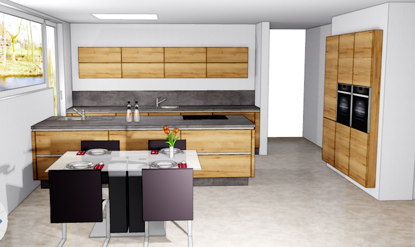 Könntest Du bitte einen Screenshot der Planungsansicht posten, so, dass man Kästchen zählen kann? Die Skizze passt nicht zum Alnoplan. Ich empfehle Dir auch unbedingt den gewünschten Tisch im Alnoplan mit einzuzeichne, um einen realistischen Eindruck der Räumlichen Gegebenheiten zu bekommen.