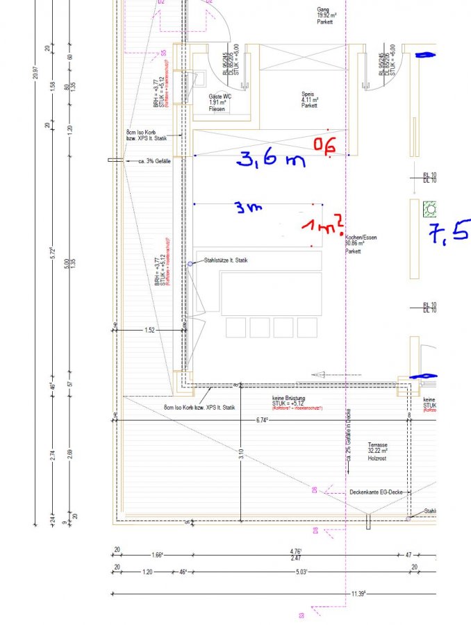 Dein Plan enthält viel zu viele Maße und Angaben - da wird keiner Lust haben, mit der Lupe drin rumzusuchen. ;-) Bitte stelle einen vermaßten Küchengrundriss ein, in dem alle Strecken (Gesamtlängen sowie Teilabschnitte), Ecken und Vorsprünge, Fenster, Türen, Installationen (Heizung etc.) und Anschlüsse eingezeichnet sind. Eine Handzeichnung reicht aus.