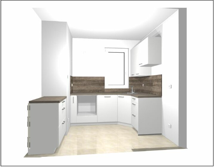 ich habe ein paar Grundrissanpassungen vorgenommen, daher ist es jetzt eine offene Küche, wie im Anhang. Da wo ursprünglich der Eingang war steht nun ein freistehender Unterschrank .